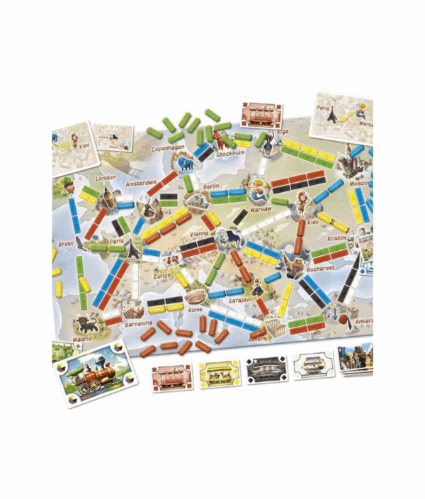 Construa rotas ferroviárias com seus trens e complete os bilhetes para vencer! Fácil de aprender e rápido de jogar, Ticket to Ride: Primeira Viagem encanta toda a criançada! O jogo de 2 a 4 participantes é uma versão simplificada do premiado jogo de tabuleiro Ticket to Ride, vencedor do prêmio jogo do ano de 2004.